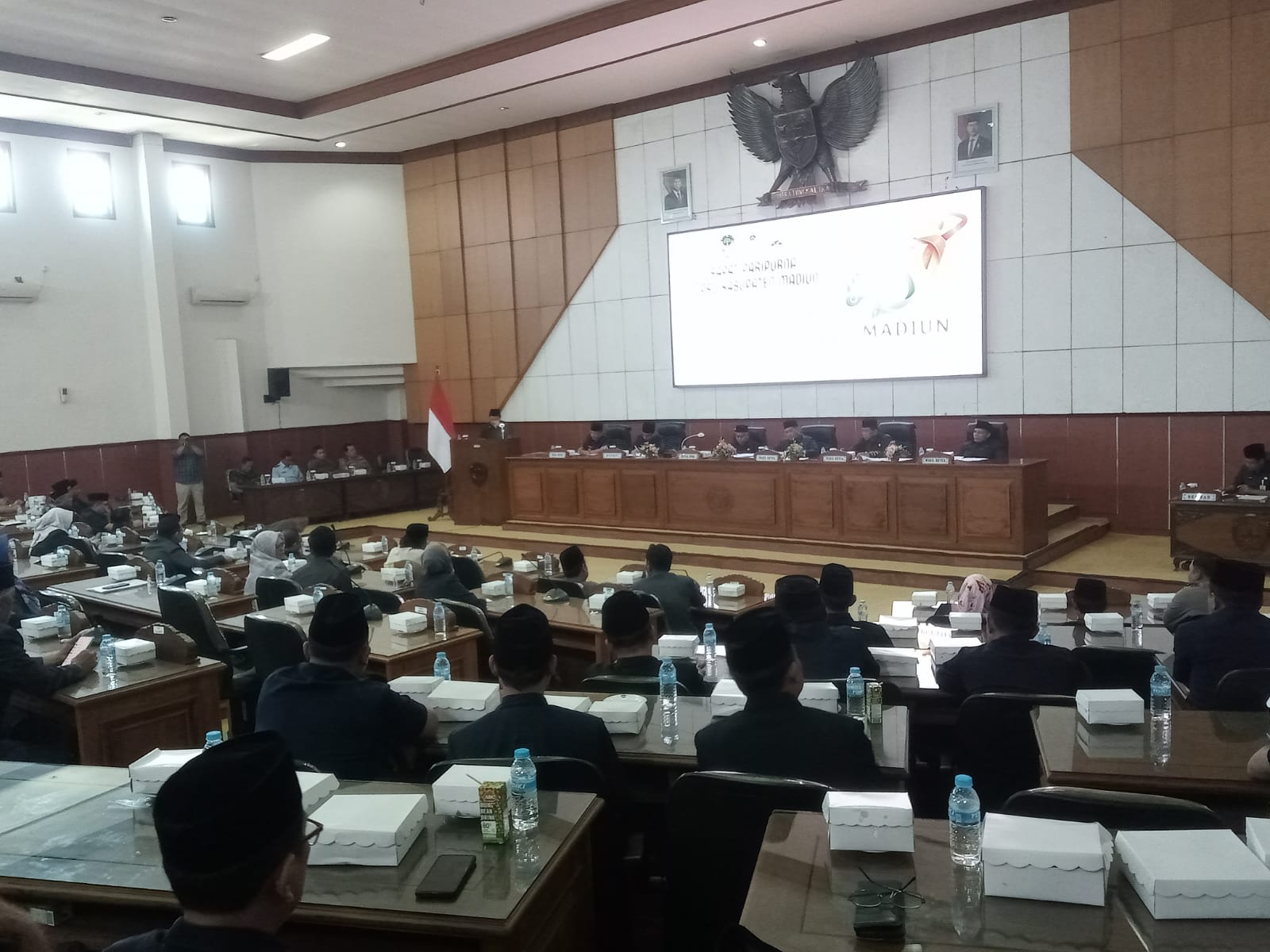 MADIUN | KABARPLUS – DPRD Kabupaten Madiun kebut dua Paripurna sekaligus, yakni Pembahasan Raperda LPJ Pelaksanaan APBD tahun anggaran 2024, Berlanjut, Paripurna Jawaban Bupati atas PU Fraksi Fraksi DPRD terhadap Raperda RPJMD tahun 2025-2029.