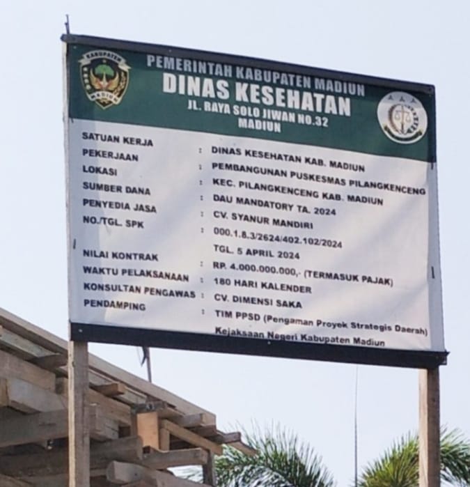 Sekedar mengingatkan, Pemkab Madiun pada tahun 2024 lalu menggelontorkan anggaran sebesar Rp5 miliar untuk pembangunan Puskesmas Pilangkenceng. Dalam lelang, CV Syanur Mandiri dinyatakan sebagai pemenang tender dengan nilai kontrak Rp4 miliar, ini artinya, penawaran pagu nilai proyek terjadi penurunan cukup drastis. Meski, Pemerintah Daerah setempat diuntungkan, dampaknya kualitas bangunan saat dikerjakan bakal terjadi penurunan kualitas. (arb)