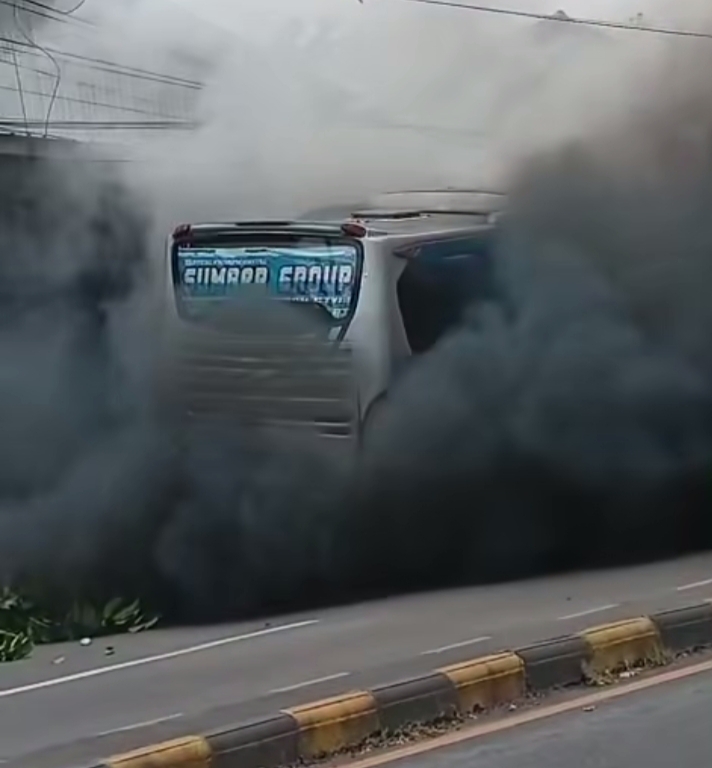 Saat kejadian, bus dalam kondisi kosong karena seluruh penumpang telah dipindahkan ke armada lain. Lampu *hazard* juga telah dinyalakan sebagai tanda peringatan bagi pengguna jalan lainnya.